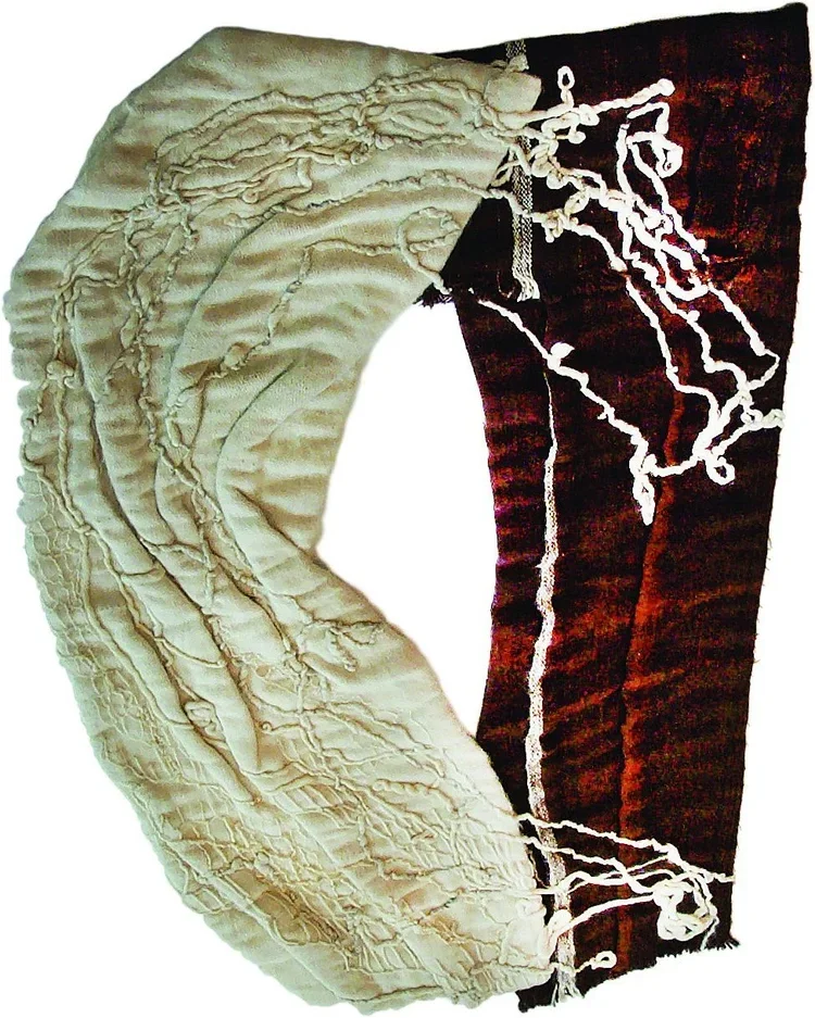 “‘Aqua Lapis’ is not just a title. It is a whole new way of thinking about source material… I have molded the wool like clay into an undulating pattern... This is a complicated and tedious process because the sense of flow must not be lost… Finished, the lining makes the outer layer seem more luxuriant, the gentle roll as it hangs on the wall is a miraculous suspension, a defiance of gravity without tension.”